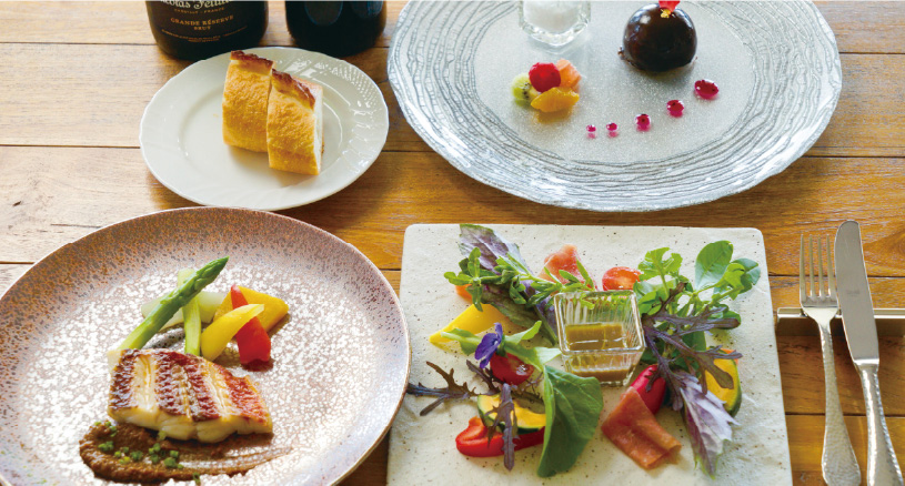 島の豊かな海と大地で、降りそそぐ太陽と潮風に育てられた島の食材を一番美味しく、シンプルに味わえるフレンチレストラン。