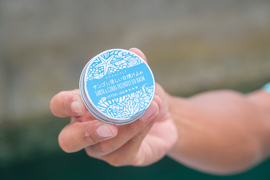 例えば、私たちが普段使っている日焼け止め、これをつけて、肌を露出しながら、海に潜ってしまうと、有害な日焼け止めの成分が海に流れ出し、サンゴをはじめ多くの海洋生物にダメージを与えてしまいます。それを最小限に防ぐため、サンゴに優しい日焼け止めを使用したり、長袖のウェットスーツやラッシュガードを着用し、できるだけ日焼け止めの流出を抑えて頂ければと思います。
