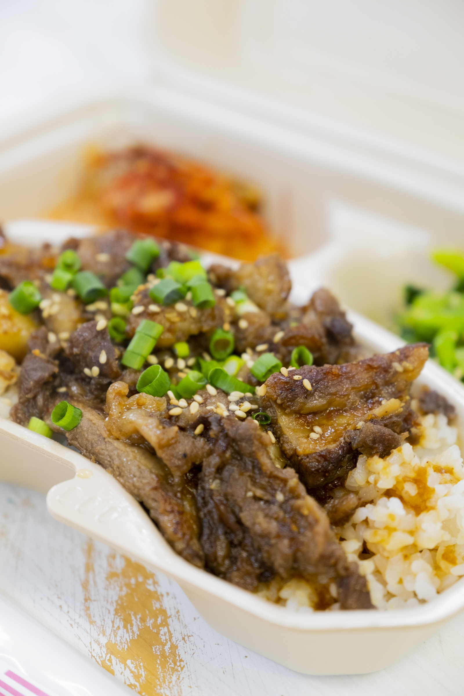 たれが良くしみ込み、ぷりぷりっとしたすじ肉がたまりません!! - 炭火焼カルビ弁当 800円